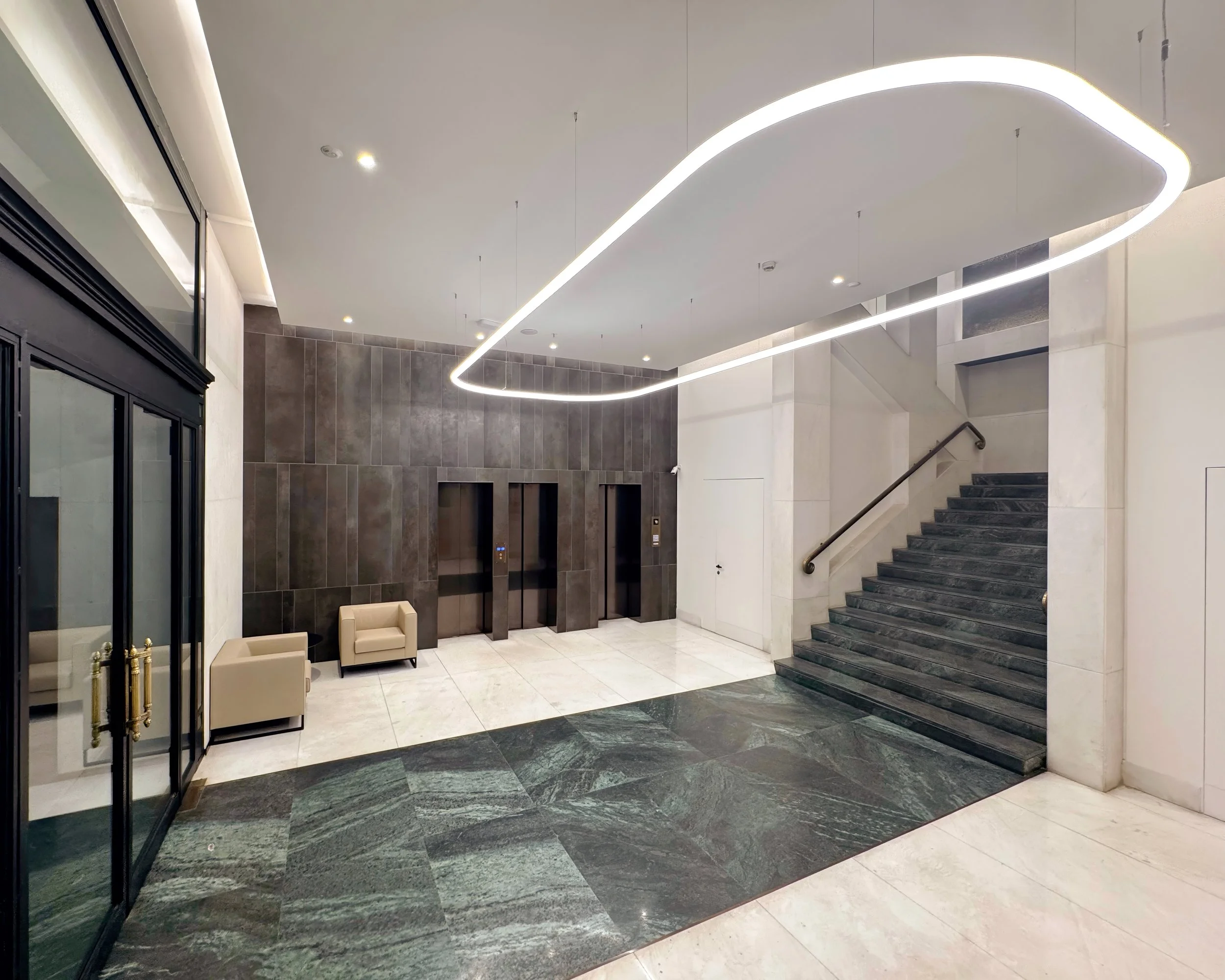 Riqualificazione finiture interne e relamping dell’atrio ingresso e scale, relamping facciate
