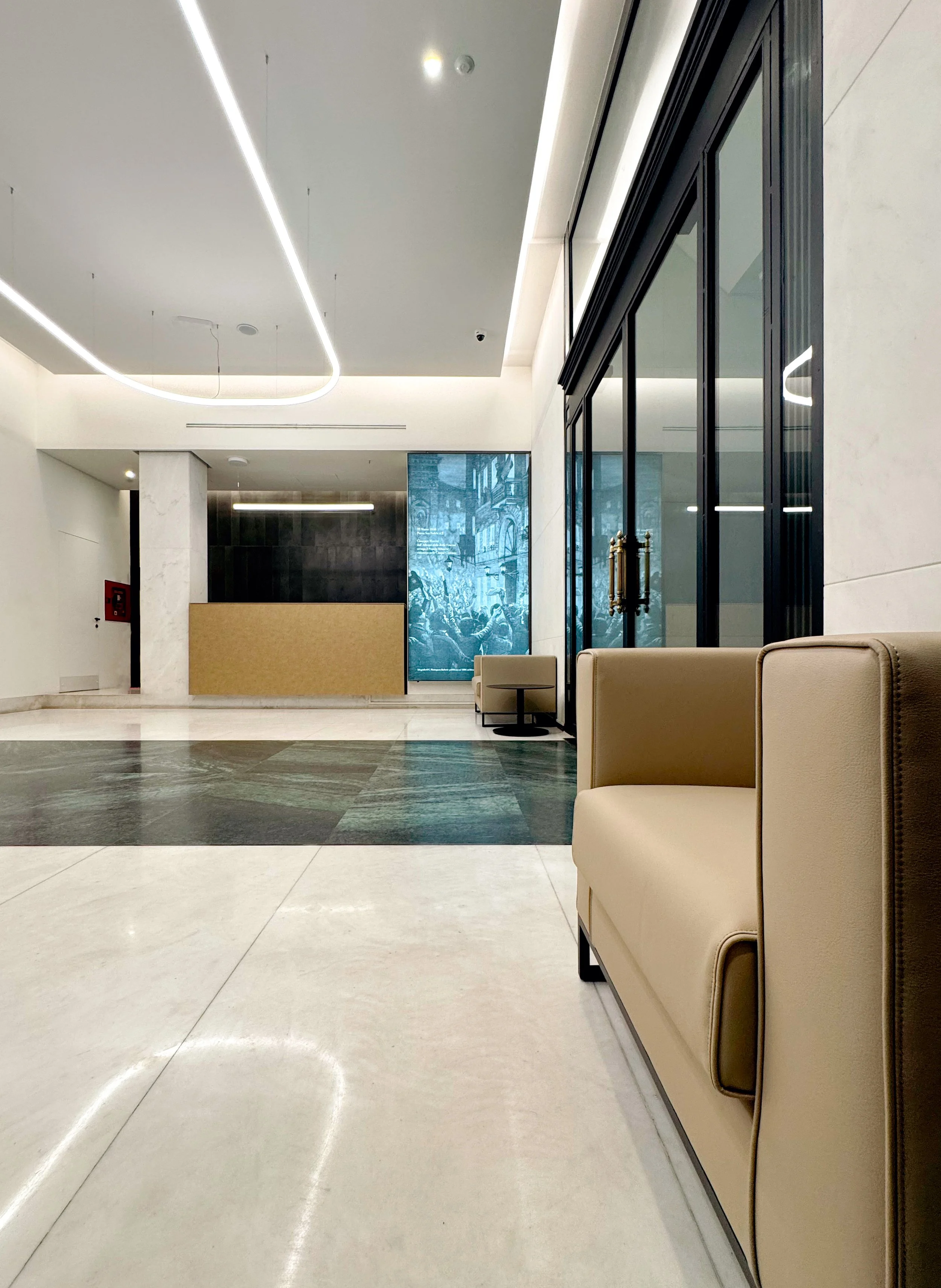 The new lighting, some selective finishes, together with the simplification of dissonant elements, reestablished spatial hierarchies and perceptual clarity, restoring coherence to the whole. A measured intervention that redefined the space, updating it to the present without altering its historical character.