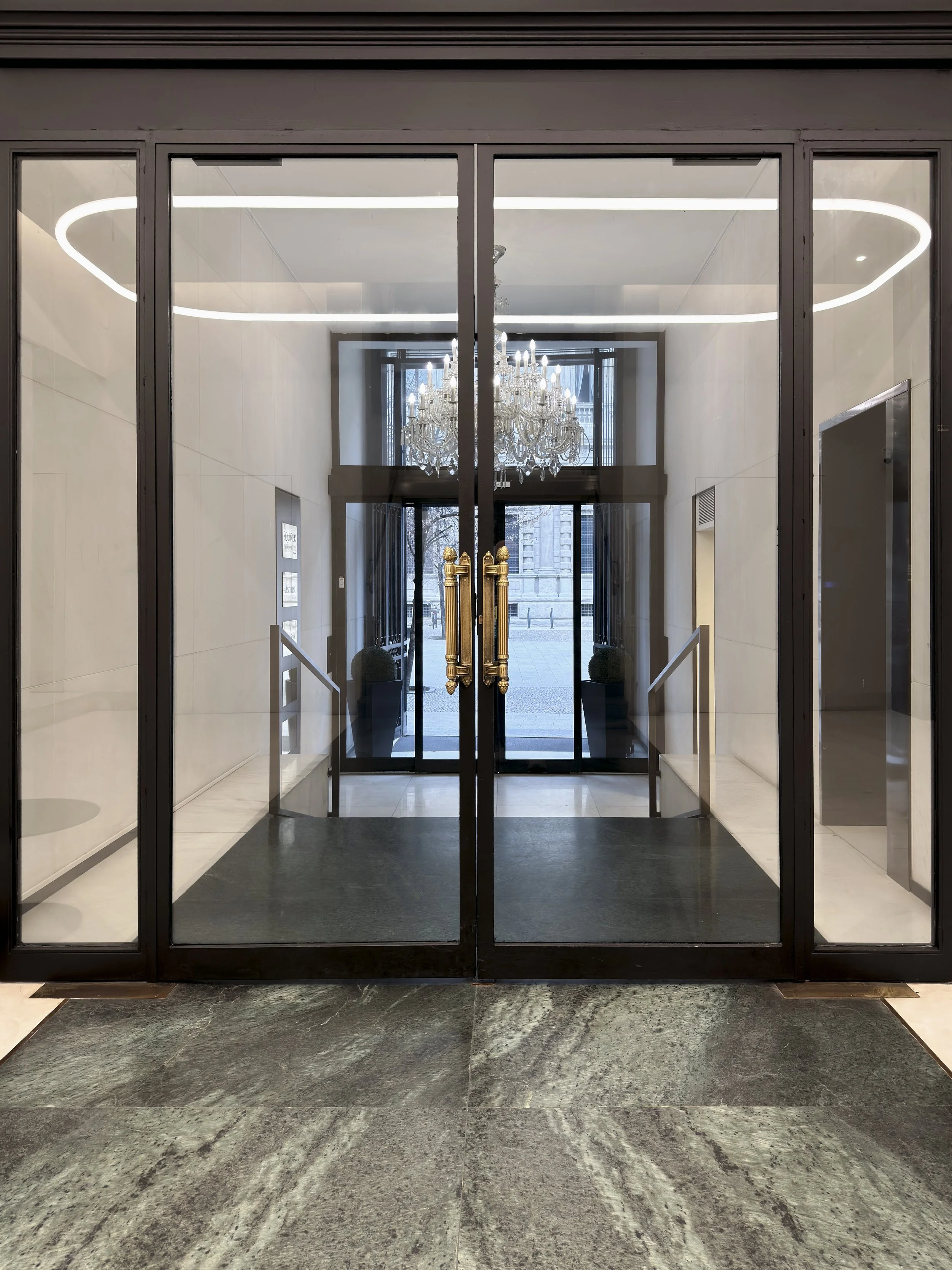 A building's entrance represents its first statement of identity. Even when the context already expresses consolidated design quality and high-quality finishes, as in the case of this property in the heart of Milan, at a certain point the need for renewal becomes apparent. Not necessarily through a radical gesture, but through a gradual process, capable of intervening step by step, like a conscious work in progress that refines and clarifies without distorting.
